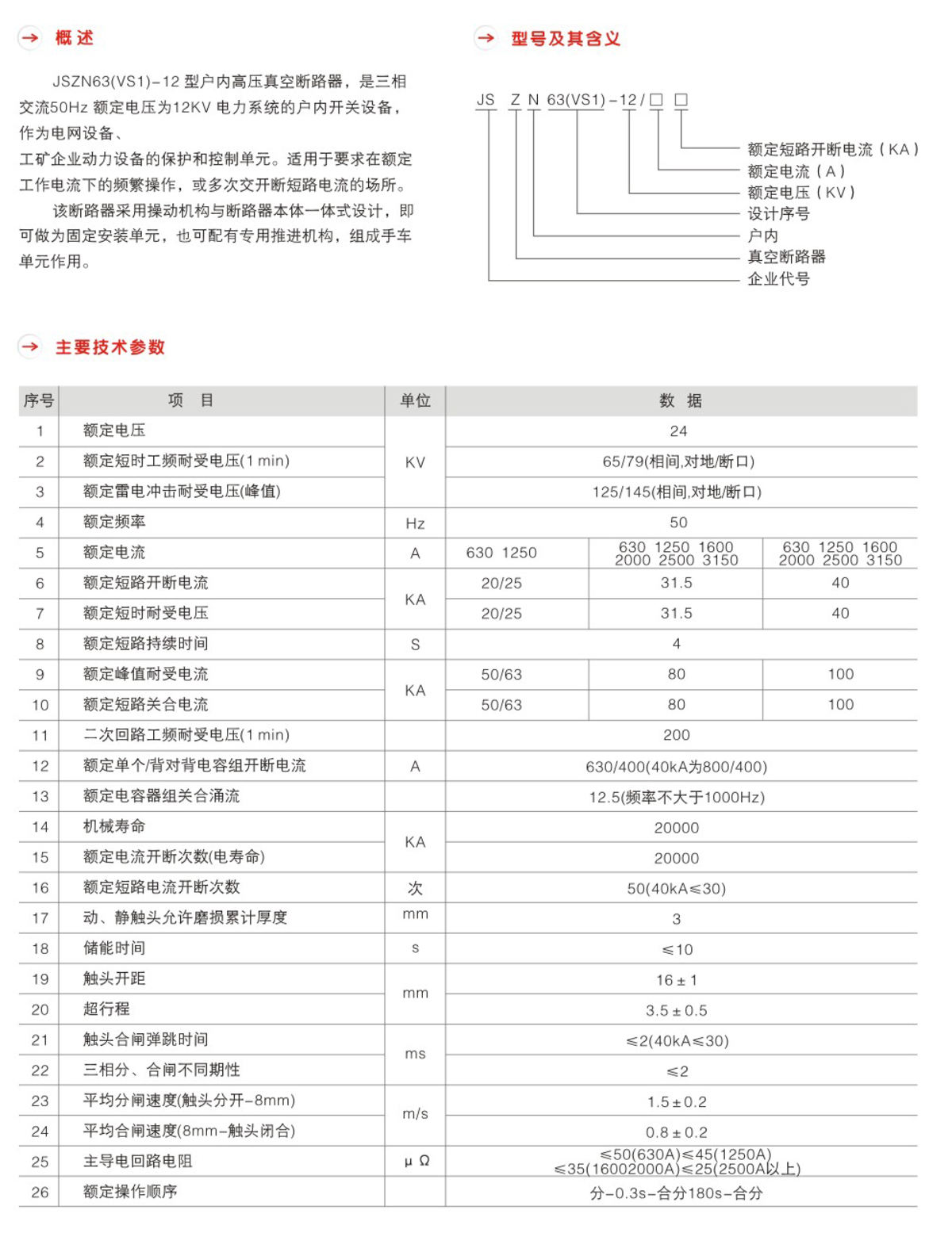 JSZN63(VS1)12系列户内高压真空断路器